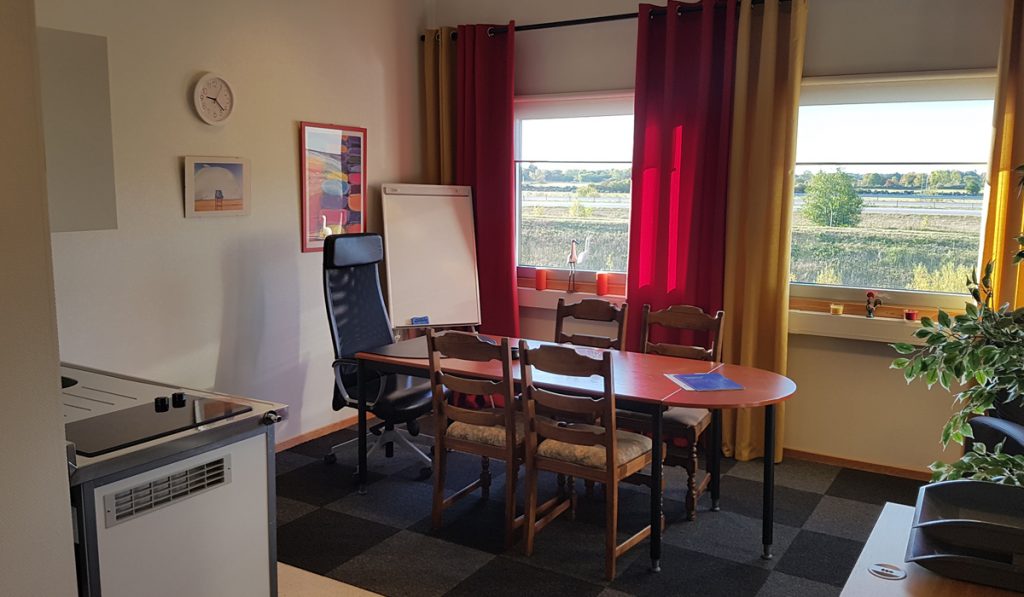 Inhägnad mark på norrsidan finns till lokalen.